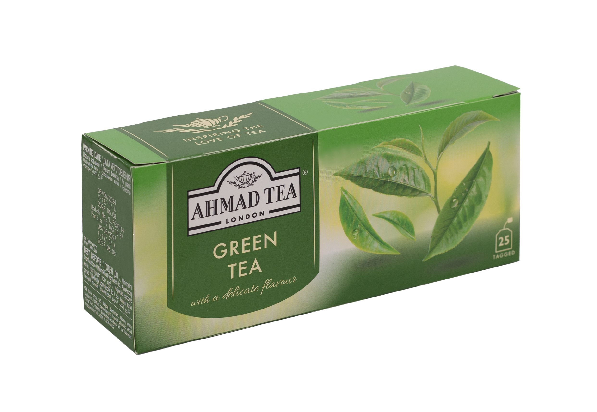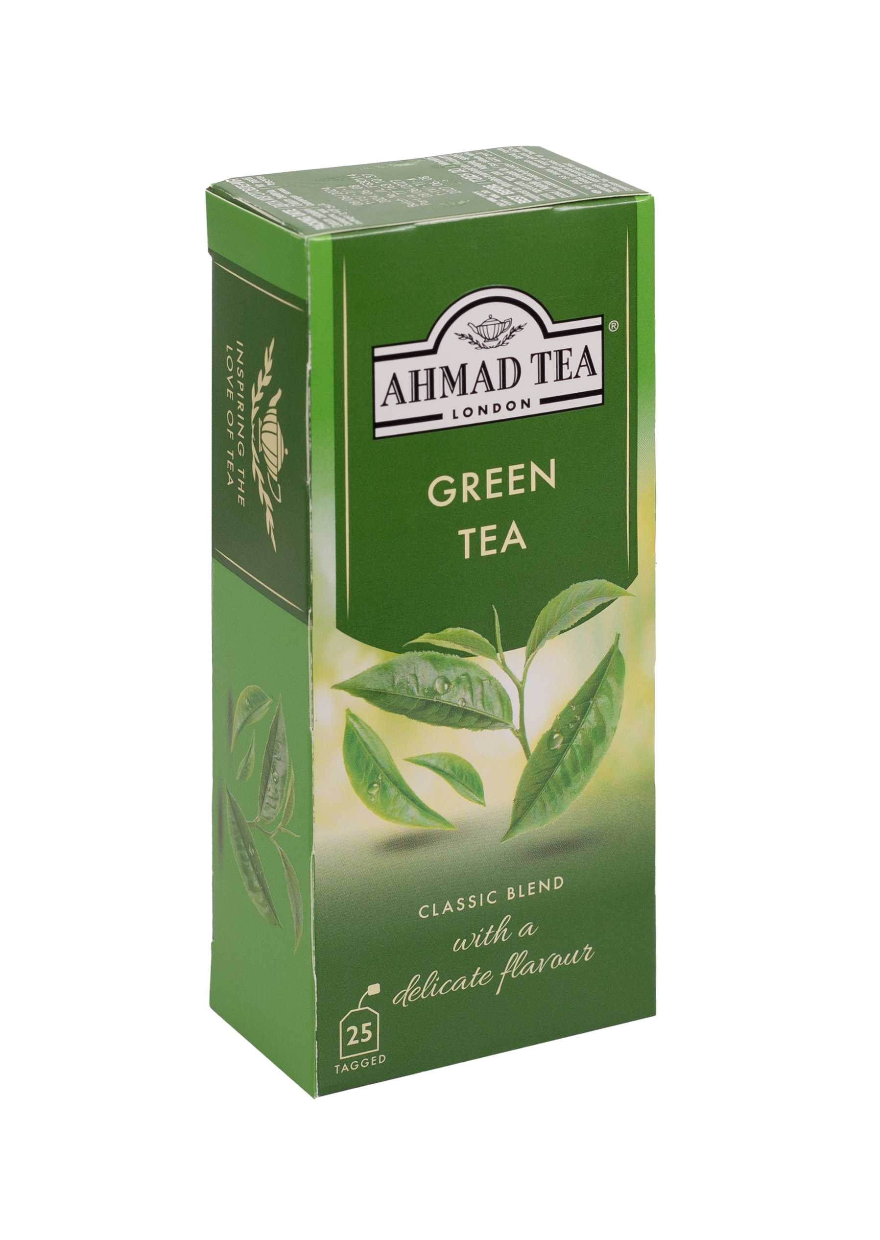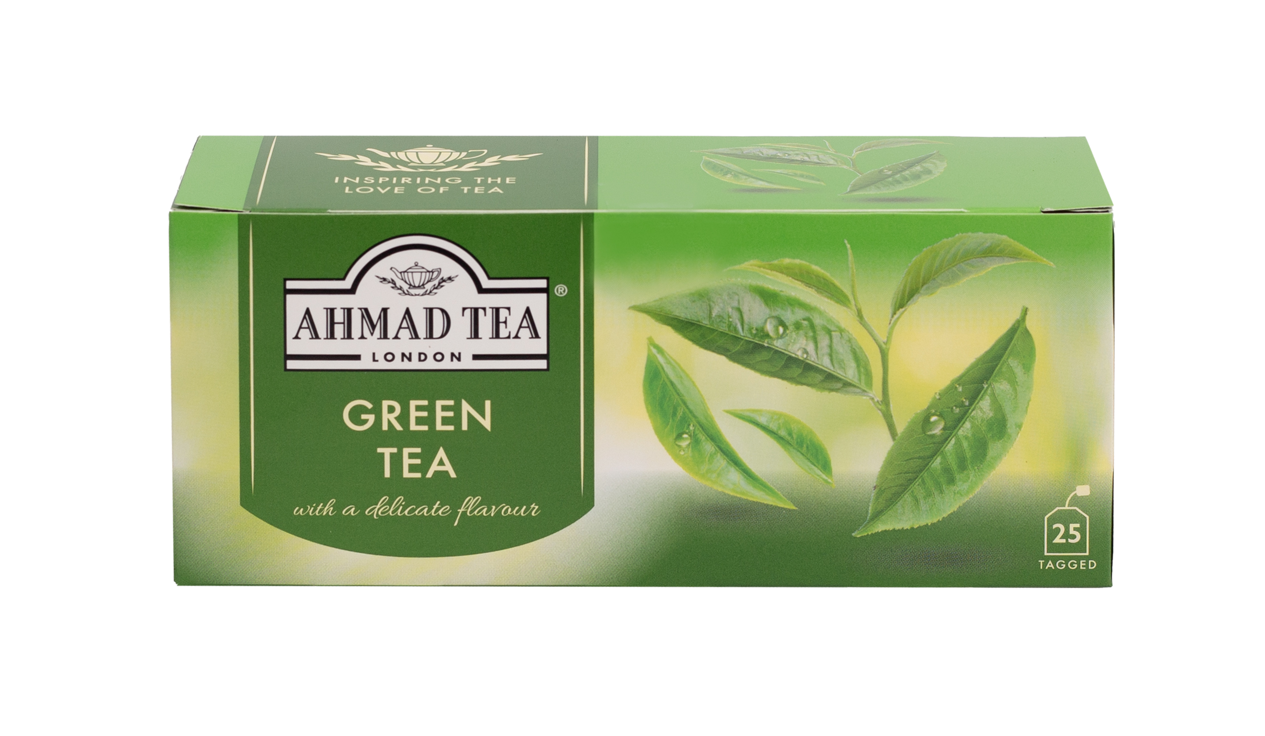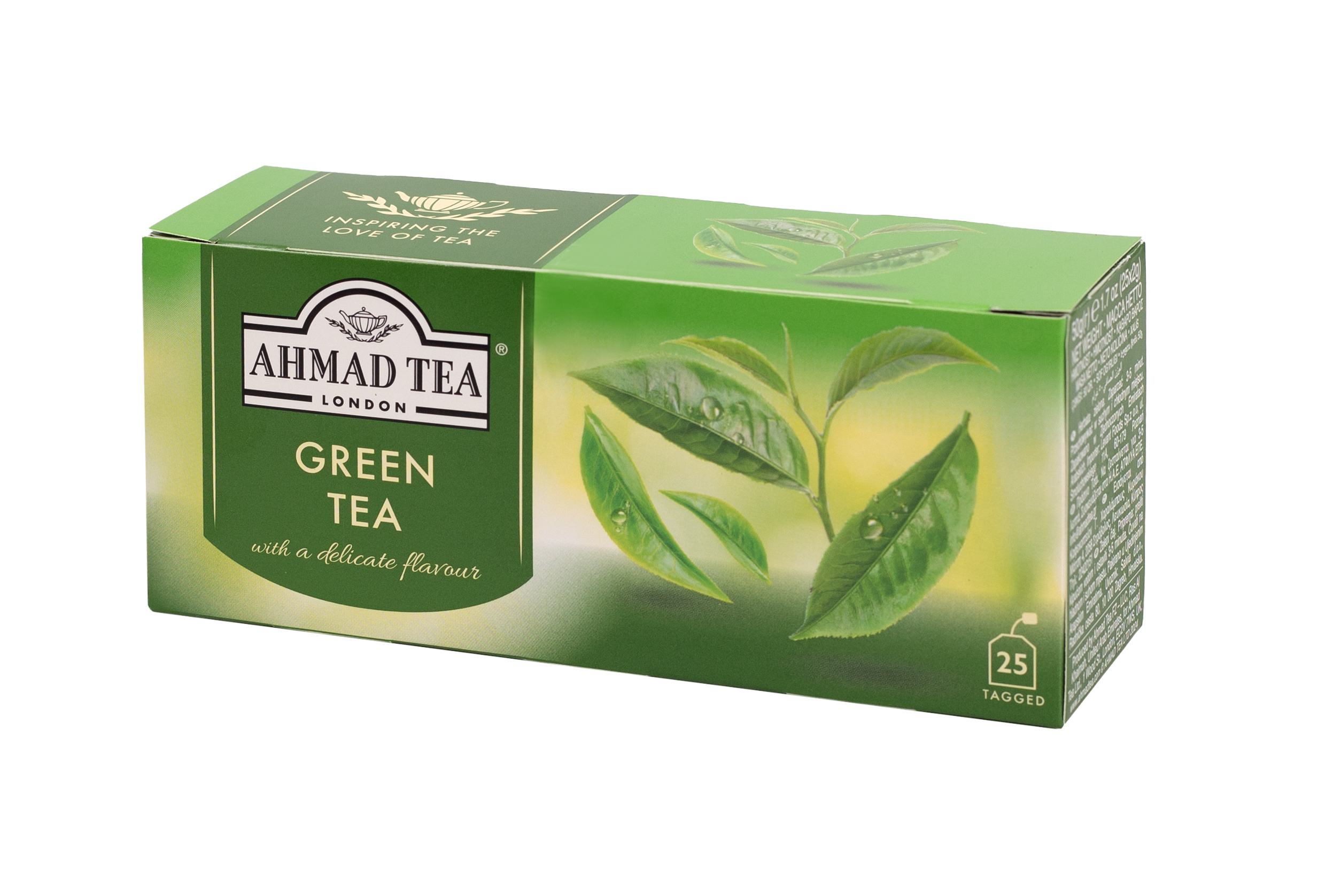 Opakowanie zawiera 25 torebek z zawieszką herbaty zielonej Green Tea