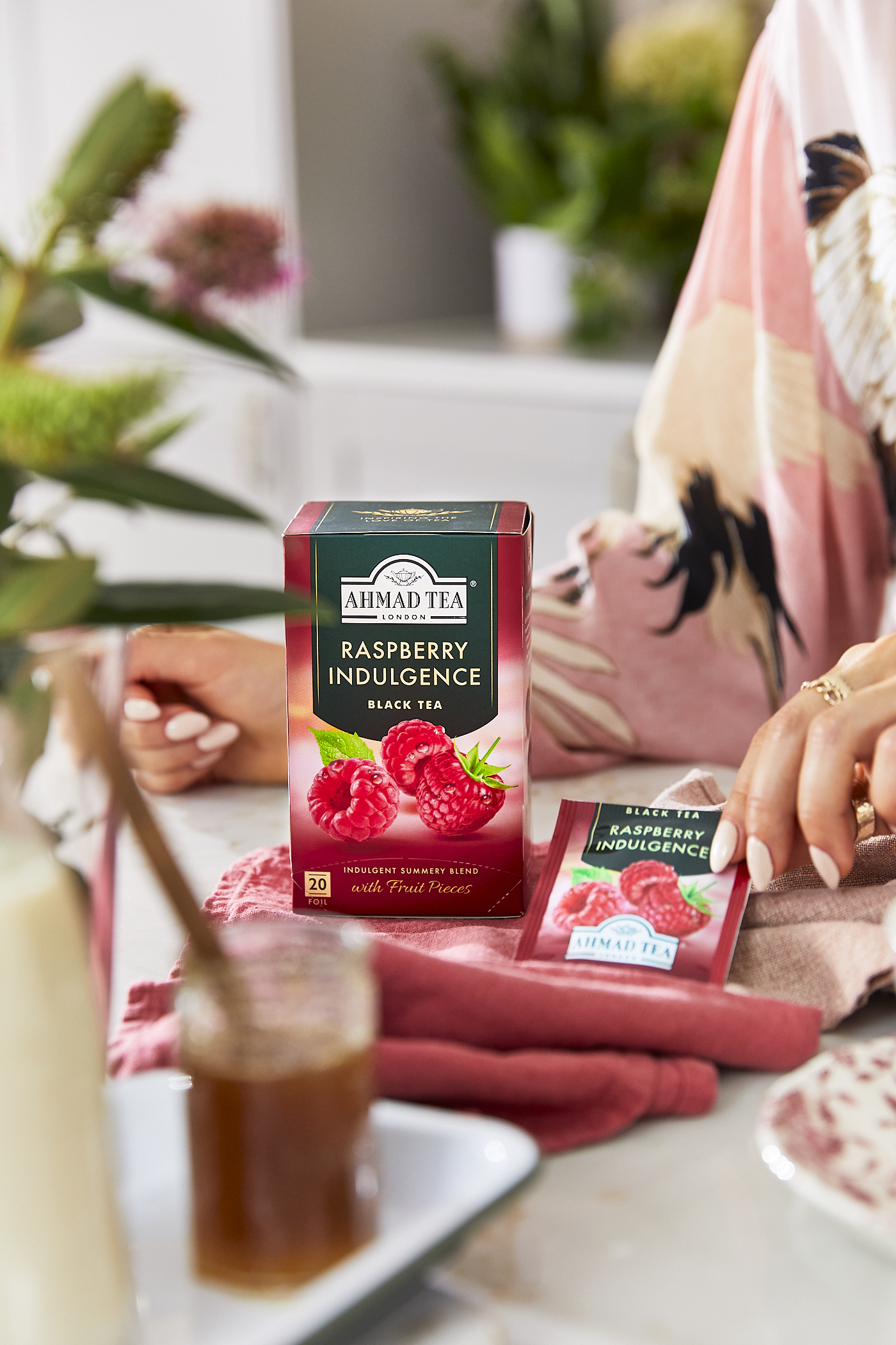 Zafunduj sobie smak lata z Raspberry Indulgence. Pełna smaku i zapachu słodkich, soczystych malin, ta oczyszczająca czarna herbata zostaje podniesiona do niebiańskiego owocowego naparu. Ta popularna mieszanka, będąca częścią kolekcji Herbaty Ahmad od ponad 20 lat, jest uwielbiana ze względu na swój unikatowy malinowy charakter. Mistrzowie Herbaty dodają prawdziwe kawałki malin, a także ekskluzywny smak malinowy, do bazy czarnej herbaty wykonanej z wysokiej jakości afrykańskich herbat. Idealnie równoważą się one ze słodko cierpkimi malinami, tworząc pysznie orzeźwiający napar.